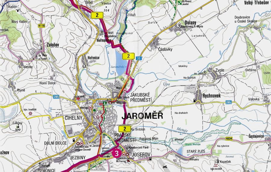 Mapa turystyczna, rowerowa Łabskiej Ścieżki Rowerowej (Labská stezka) na odcinku Hradec Králové - ZOO Dvůr Králové. Podkłąd wydawnictwa Shocart, skala 1:50 000