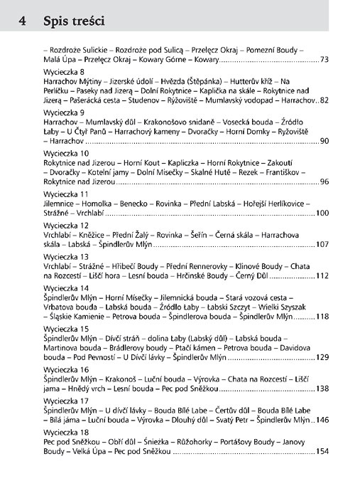 Przewodnik turystyczny nie jest pracą naukową, niemniej jednak chciałbym wymienić kilka publikacji, które mogą poszerzyć Twoją wiedzę o Karkonoszach i z których korzystałem podczas pracy nad przewodnikiem. Trudno byłoby ułożyć pełną listę, bo składałoby się na nią, mogę to powiedzieć bez przesady, przynajmniej kilkaset książek, czasopism, prac naukowych i artykułów — nie czas i miejsce na wymienianie ich wszystkich. Niemniej jednak chciałbym podziękować za pomoc w zbieraniu materiałów p. Jiřemu Baącie, redaktorowi naczelnemu miesięcznika „Krkonoąe Jizerské hory”, oraz p. Pavlowi Klimeąowi, wydającemu czasopismo „Veselý výlet” i przy okazji zachęcić do sięgania po tworzone przez nich czasopisma (Veselý výlet wydawany jest również w wersji polskiej). Wiele interesujących materiałów znaleźć można również w naszych czasopismach: „Karkonosze” oraz „Sudety”, a także w licznych książkach wydawanych przez regionalne wydawnictwa.