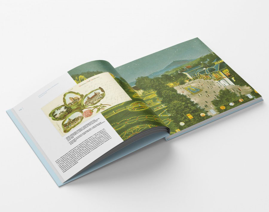 Grafiki i pocztówki ze zbiorów Muzeum Narodowego we Wrocławiu oraz Muzeum Karkonoskiego w Jeleniej Górze ilustrują tekst opracowany przez kustosz Paulinę Suchecką z Muzeum Etnograficznego. Publikacja w twardej oprawie, wysmakowana edytorsko.