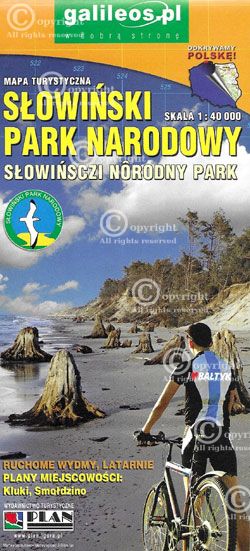 Mapa turystyczna: ''Słowiński Park Narodowy. Ruchome Wydmy''. Wydawnictwo Turystyczne PLAN, wydanie V, Jelenia Góra 2024. Skala 1:40 000, plany centrum Ustki i Łeby, Smołdzina, Rowów, Kluków, Poddąbia, szlaki rowerowe, atrakcje turystyczne.