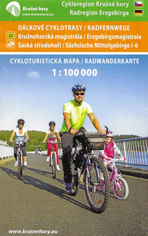 Mapa turystyczna "Rowerowe trasy długodystansowe: Krušnohorská magistrála, Saská středo hoří" w skali 1:100 000