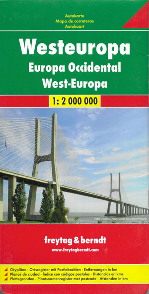 Mapa samochodowa w skali 1:2 000 000 "Europa Zachodnia" + książeczka ze skorowidzem miejscowości i planami większych miast. Wydawnictwo Freytag & Berndt, Wiedeń