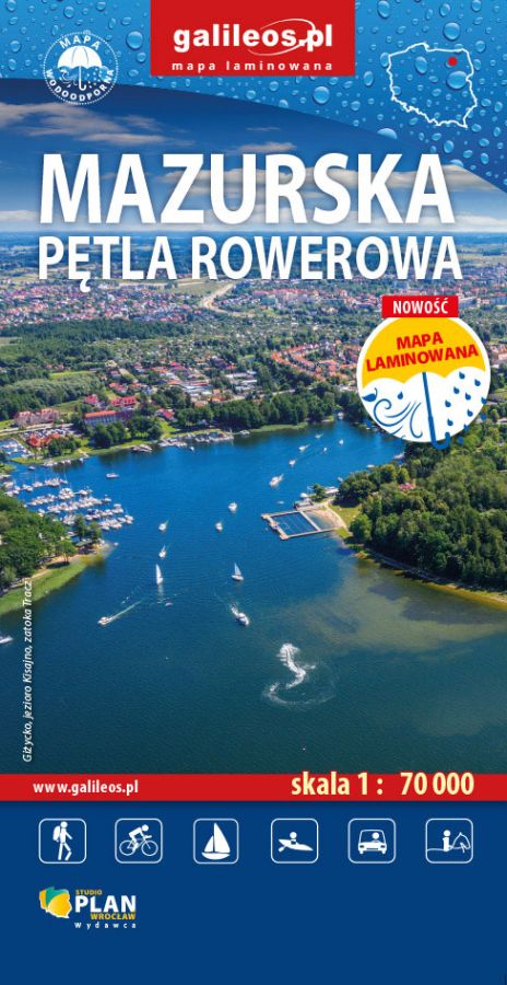 Mapa turystyczna "Mazurska Pętla Rowerowa" w skali 1:70 000. Studio Plan, Wrocław 2024, wydanie I. Wersja laminowana, wodoodporna