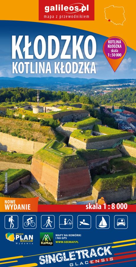 Mapa "Kłodzko, Kotlina Kłodzka" w skali 1:50 000, plan miasta w skali 1:8 000. Studio Plan, Wrocław 2024, wydanie VII