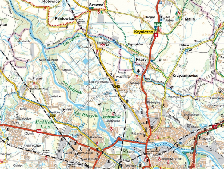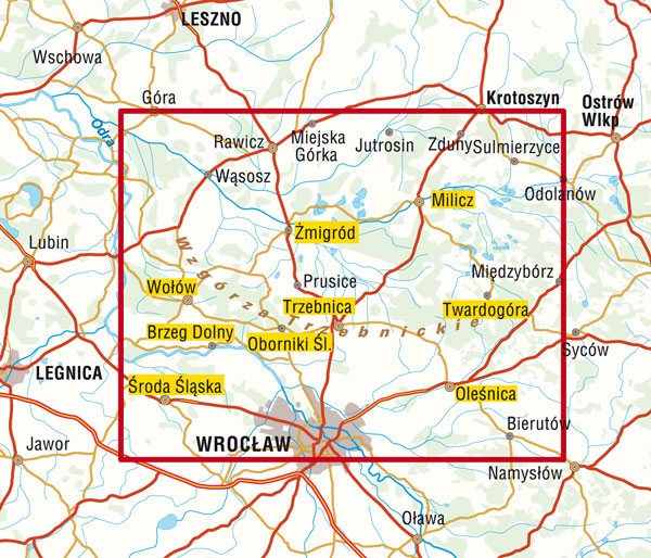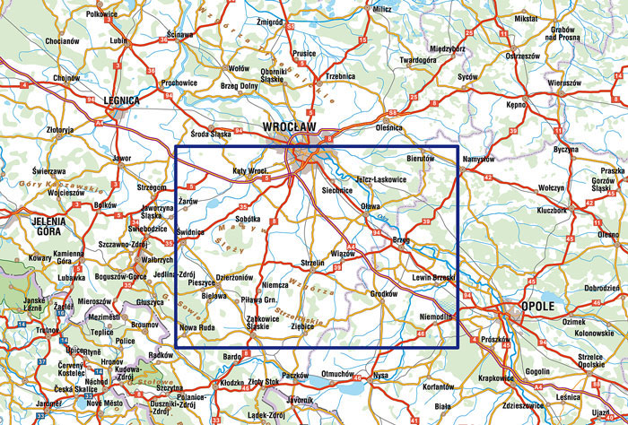 Opracowanie kartograficzne dotyczy okolic Wrocławia, podzielonych na dwie mapy (część południową i północną). Treść map obejmuje wszystkie miejscowości z podziałem na ich rangę, wszystkie drogi według ich klasy, szerokości i znaczenia, numery dróg, stacje paliw, parkingi, granice gmin, powiatów, tereny leśne, szlaki turystyczne piesze, rowerowe, konne i przyrodnicze, zabytki, kościoły, atrakcje turystyczne, hotele.