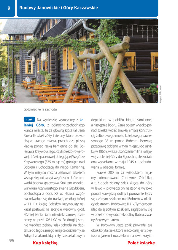 Krzysztof Bzowski: "Sudety. Najpiękniejsze wycieczki w Polsce, Czechach i Niemczech (mountainbook)". Wydawnictwo Bezdroża, Gliwice 2020, wydanie I. Okładka miękka, format 13,5 x 19 cm, stron 288, kolorowe ilustracje, mapy