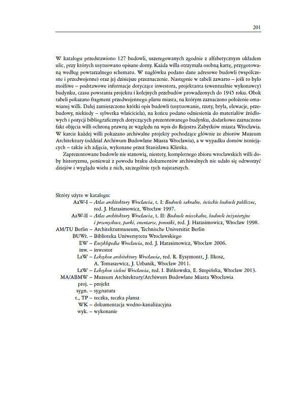 Agnieszka Tomaszewicz: "Wrocławskie wille i osiedla willowe doby historyzmu". Oficyna Wydawnicza Politechniki Wrocławskiej, Wrocław 2019. Okładka miękka, format 21 x 27 cm, stron 512, czarno-białe i kolorowe ilustracje